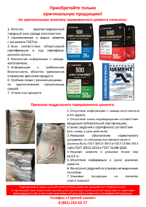 Незаконный оборот поддельного тарированного цемента – это существенная проблема для экономики края. Но самое главное: применение некачественного фальсификата создает угрозу для здоровья и жизни людей. Такой цемент ОПАСНО ИСПОЛЬЗОВАТЬ В СТРОИТЕЛЬСТВЕ!
